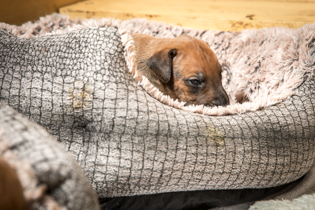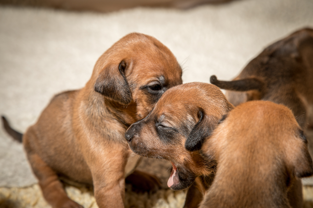 Nachdem unsere liebe Hunde-Paparazzi-Fotografin Danny , sich von einem schweren grippalen Infekt einigermassen erholt hat, hat sie einmal mehr zauberhafte Bilder der kleinen Rasselbande gefertigt, die nun mit weit und interessiert geöffeneten Äuglein und Öhrchen fröhlich durch die Wurfkiste torkeln, sich gegenseitig die zahnlosen Kiefer ins Fell schlagen, und sich schon heftig mit Ausbruchsplänen beschäftigen. Ich denke, wir müssen alsbald umziehen, damit es kein Malheur gibt, wenn sie der Kiste den Rücken kehren.